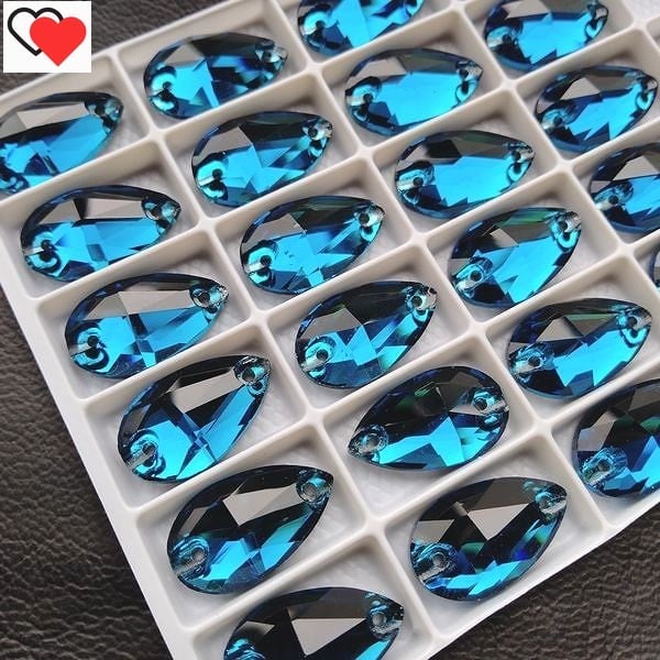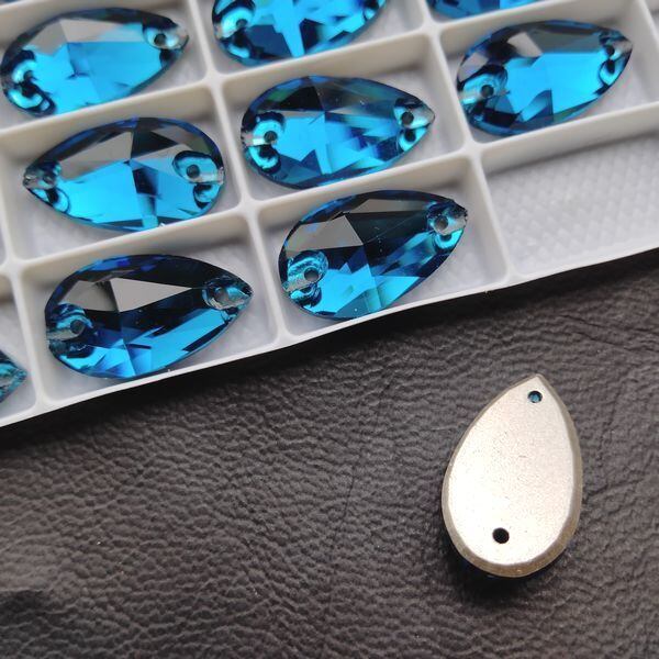 ラインストーン 高品質(5A) ガラス・縫付 ブルージルコン しずく(ドロップ)型 11mm×18mm